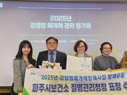 파주보건소는 질병관리청이 실시한 '2025년 감염병 매개체 방제 유공 평가’에서 우수한 방제 성과를 인정받아 지난 2일 질병관리청장 표창을 수상했다고 밝혔다.이번 표창은 말라리아 등 매개감염병의 지역