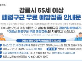 강릉시는 기온이 급격히 떨어지는 겨울철을 앞두고 면역력이 저하된 65세 이상 어르신들의 폐렴구균 예방접종률이 저조함에 따라, 중증 감염병 예방을 위한 시민들의 적극적인 접종 참여를 당부했다. 통계청