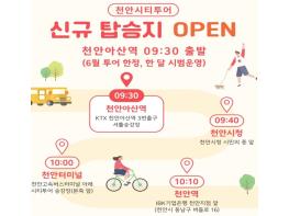 천안시가 6월 한 달간 시티투어 정규 코스의 탑승지를 확대한다고 19일 밝혔다. 시는 생활형 교통체계와 관광형 교통체계의 병행, 남부권 관광자원과의 연계를 위해 KTX 천안아산역을 시티투어 탑승지로 추