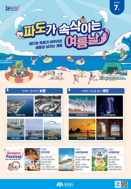 7월 주제는 ‘파도가 속삭이는 여름날’로, 본격적인 여름을 맞아 바다와 축제가 어우러진 보령과 태안의 대표 관광지를 소개한다.