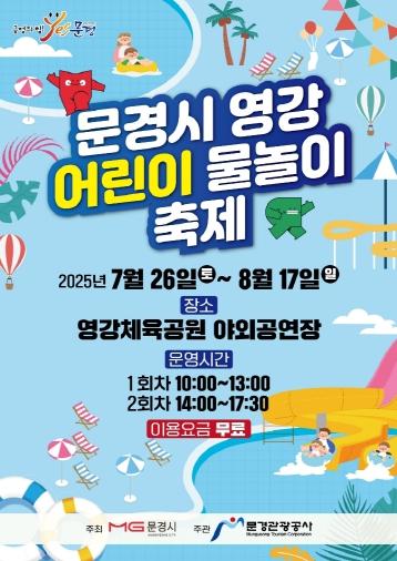 [헬스앤마켓리포터스, 조태익기자] 문경시는 오는 7월 26일부터 8월 17일까지 영강체육공원 야외공연장에서 “2025년 문경시 영강 어린이 물놀이 축제”를 개최한다.