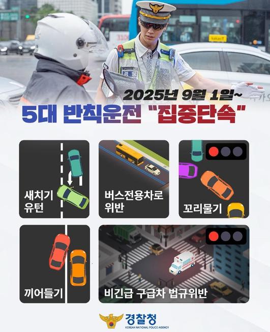 경찰청, '5대 반칙운전' 집중 단속 실시(9.1.~)