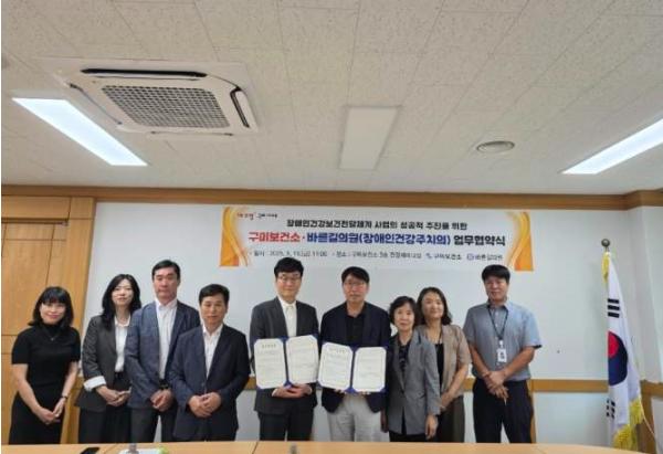 [헬스앤마켓리포터스, 조태익기자] 구미보건소는 지난 19일 구미보건소 건강세미나실에서 바른길의원(장애인건강주치의)과 장애인 건강증진을 위한 ‘장애인 건강보건전달체계사업’ 업무협약(MOU)을 체결했다.