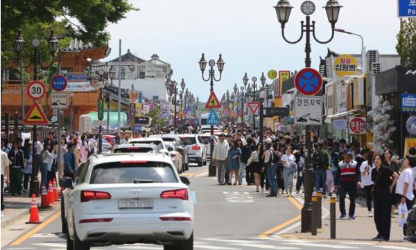 연휴 기간 황리단길과 동궁과 월지, 교촌마을 일대는 가족 단위 관광객과 외국인 여행객으로 북적였다.