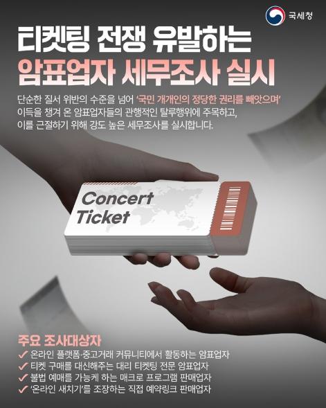 국세청, '티켓팅 전쟁' 유발하는 암표업자, 세무조사 실시