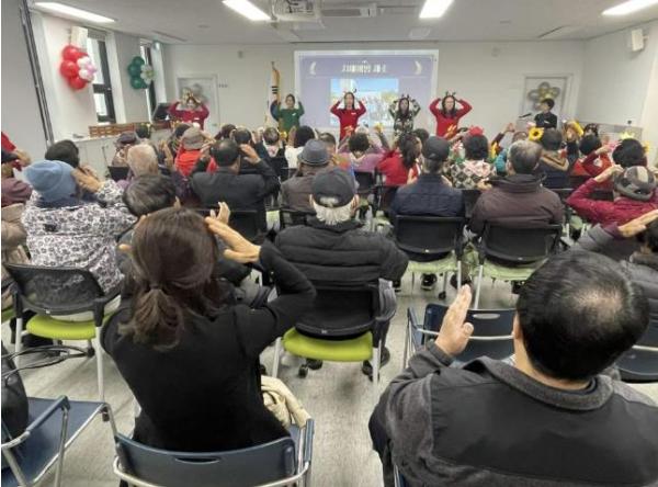 행사는 센터 직원들의 치매 예방 체조 공연, 1년 동안 함께한 보호자의 소감 발표, 프로그램 참여 어르신들의 건강 체조, 다듬이 난타 공연으로 이뤄졌다.