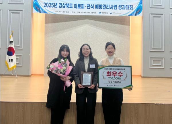 [헬스앤마켓리포터스, 조태익기자] 경주시보건소는 지난 1일 안동 그랜드호텔에서 열린 ‘2025년 경상북도 아토피‧천식 예방관리 사업 성과대회’에서 최우수상을 수상했다.