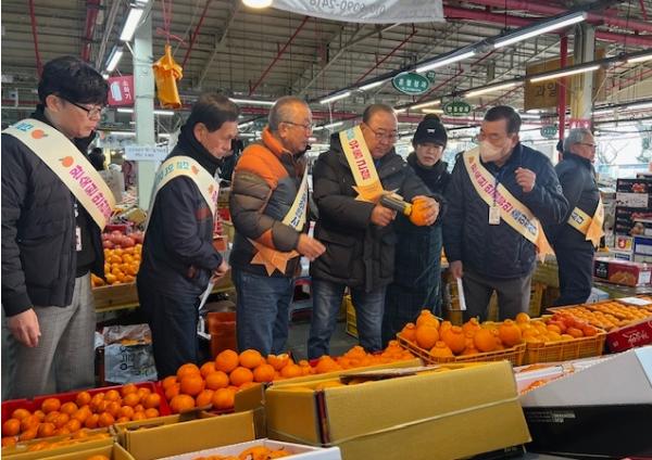 [헬스앤마켓리포터스, 강동진기자] 서귀포시는 설 명절을 앞두고 만감류 유통질서 확립과 가격 안정화를 위해 29일 만감류연합회와 서귀포시가 합동으로 서귀포시 향토오일시장과 매일올레시장을 방문해 만감류 및 온주밀감 상품품질기준 안내문을 상인에게 전달하고, 상품 품질기준 준수 및 만감류 완숙과 판매 등에 대한 현장 중심 홍보 활동을 실시했다.
