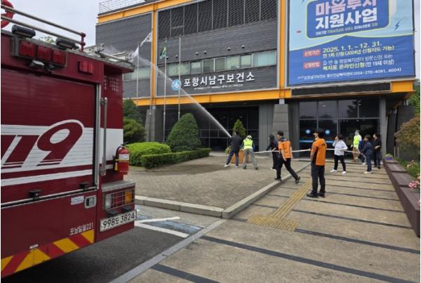 [헬스앤마켓리포터스, 조태익기자] 포항시 남구보건소는 지난 23일 포항남부소방서 일월119안전센터와 청사 내 화재 발생 시 대응 역량을 높이기 위한 합동 소방훈련을 실시했다.