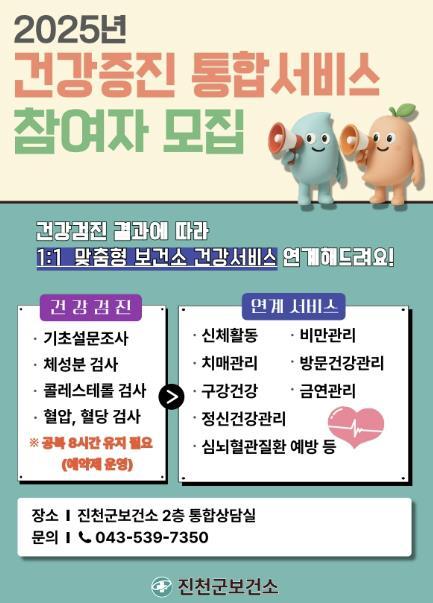 [헬스앤마켓리포터스, 조태익기자] 충북 진천군은 오는 12월까지 건강증진 통합서비스를 본격 운영한다고 28일 밝혔다.