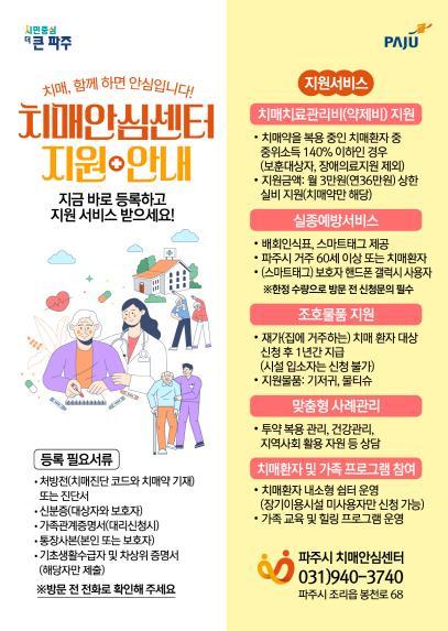 이한상 파주보건소장은 “치매안심센터의 환자 등록 서비스가 단순한 관리 차원을 넘어 실제로 삶의 질을 높이는 데 도움을 줄 수 있도록 노력하겠다”라고 말했다.