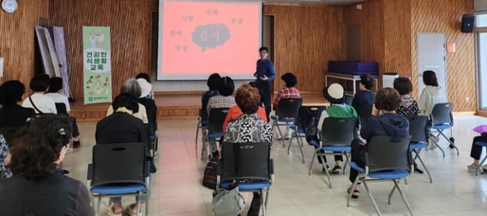 보건지소에서 진행된 교육에는 60세 이상 주민 약 30여명이 참석했으며, 한국식생활교육연구소 대표 신송희 강사가 교육을 진행했다.