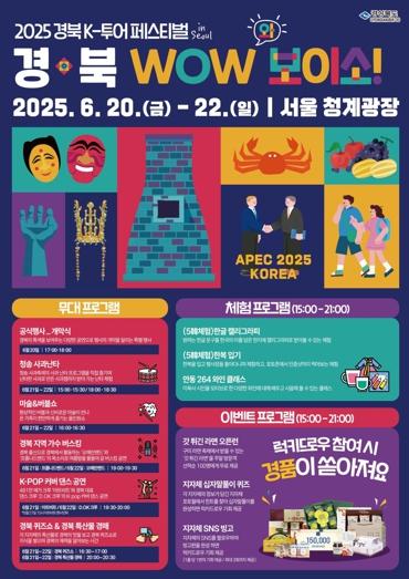 [헬스앤마켓리포터스, 조태익기자] 경상북도가 20일부터 22일까지 3일간 서울 청계광장 일대에서 ‘2025 경북 K-투어 페스티벌 IN 서울 – 경북 WOW(와) 보이소!’를 개최한다.