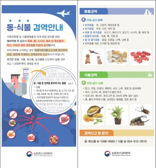 더불어, 해외여행객에게 검역 유의 사항을 사전에 알리기 위해 공항과 항만 내 전광판, 배너 등에 게재하고, 홍보 캠페인을 통해 반입금지 농축산물과 주요 적발 품목 등을 직접 안내한다.