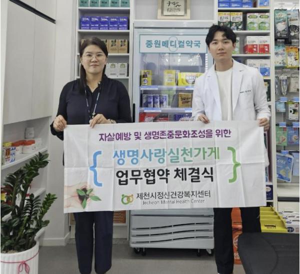 ‘생명사랑 실천약국’ 사업은 정신건강복지센터와 약국이 협력해 자살위험 신호를 조기에 인식하고 전문기관에 연계하는 지역 중심형 자살예방사업이다. 현재 제천시에서는 이번 협약을 포함해 총 55곳의 약국이 참여하고 있다.