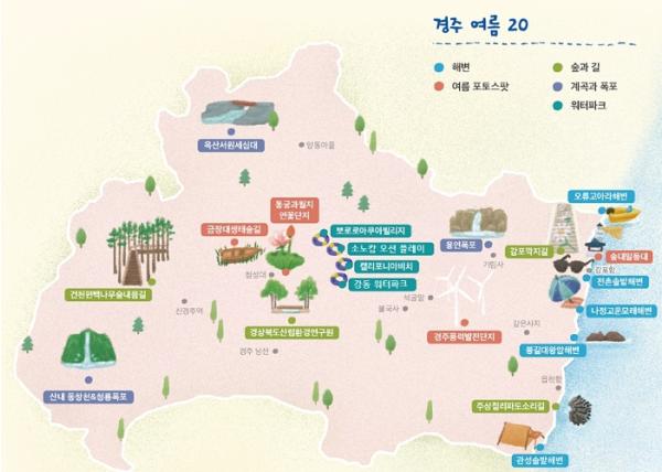 시는 바다, 숲길, 계곡, 포토스팟, 워터파크 등 다섯 가지 테마로 '여름경주 힐링스팟 20Pick'을 구성해 공개했다. 선정된 명소 대부분은 접근성이 뛰어나고 입장료 부담이 적어 시민과 관광객 모두가 부담 없이 즐길 수 있는 것이 특징이다.