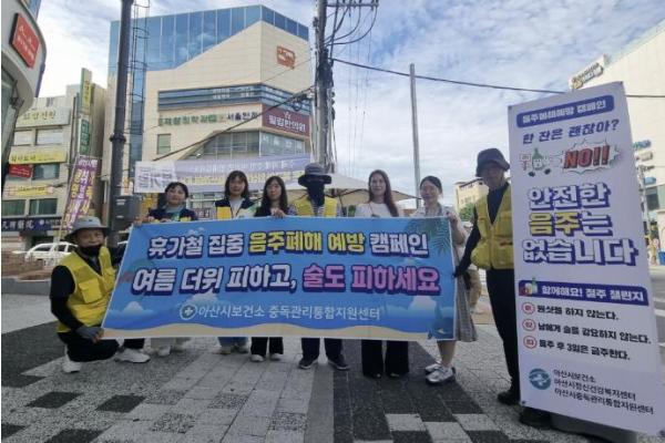 [헬스앤마켓리포터스, 조태익기자] 아산시가 여름 휴가철을 맞아 시민 대상 음주 폐해 예방과 정신건강 집중 홍보를 위해 캠페인을 실시 했다.