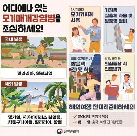 모기매개감염병은 바이러스를 옮기는 모기에 물려 발생하는 질환으로, 국내에서는 주로 말라리아와 일본뇌염이 발생하며, 해외에서는 뎅기열, 지카바이러스감염증, 치쿤구니야열 등이 유행하고 있다.