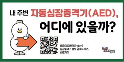 안내판에는 보건복지부 응급의료포털(응급의료센터 E-Gen)의 심장충격기 위치 안내 페이지로 직접 연결되는 QR코드가 있어 스마트폰으로 스캔하기만 하면 자신의 위치를 중심으로 가까운 AED 위치를 쉽게 확인할 수 있다.