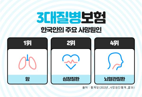 [헬스앤마켓리포터스, 강동진기자] 3대질병으로 일컬어지는 암, 뇌혈관질환, 심혈관질환은 한국인의 주요 사망원인에서 상위를 차지하고 있으며, 이에 대한 진단비를 집중적으로 보장해 주는 보험상품을 3대질병진단비 보험이라 할 수 있다.