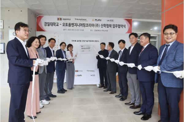 정현태 경일대 총장은 “경일대는 시대적 요구에 부응하는 실무 중심 교육을 통해 산업현장에 즉시 투입 가능한 실무형 인재를 양성하고자 산업체와 긴밀한 교육협력을 이어오고 있다”며 “이번 오토폼–아진산업과의 협력은 산학이 함께 미래 제조혁신을 주도할 인재를 키우는 모범 사례가 될 것”이라고 밝혔다.