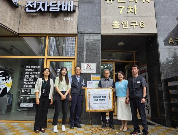 [헬스앤마켓리포터스, 조태익기자] 파주시 운정보건소는 지난 14일 야당역 인근 유은타워 7차 상가에서 금연시설 지정 기념 현판식을 개최했다. 이번 행사는 국민건강보험공단과 협업하여 진행됐으며, 금연구역 지킴이 운영 시설에 상징적인 현판을 부착하고 이를 기념하기 위해 마련됐다.