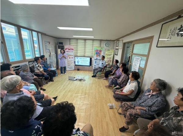 특히 매주 화요일 ‘찾아가는 건강사랑방’ 프로그램을 운영해 경로당을 방문, 폭염 대비 건강수칙 교육을 실시하고 있다. 이 교육은 무더위 속에서도 건강을 지키는 생활수칙과 응급상황 시 대처법을 알기 쉽게 전달해 어르신들의 큰 호응을 얻고 있다.
