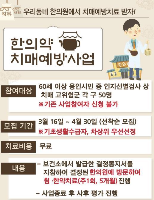 [헬스앤마켓리포터스, 조태익기자] 용인특례시는 시민의 건강한 노후를 지원하기 위해 16일부터 ‘2026년 한의약 치매예방 프로그램’ 참여자를 모집한다고 밝혔다.