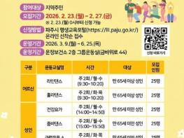 파주시 운정보건소는 지역 주민의 건강 증진과 신체활동 실천을 돕기 위해 2026년 상반기 ‘순환 운동교실’과 ‘그룹 운동교실’참여자를 모집한다.순환 운동교실 ‘혈관 튼튼·심뇌 튼튼’은 ‘에어보드’