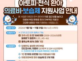 파주시 운정보건소는 아토피피부염과 천식 등 알레르기질환을 앓고 있는 환아의 건강한 성장과 보호자의 의료비 부담 완화를 위해 ‘아토피·천식 환아 지원사업’을 연중 운영하고 있다.‘의료비·보습제 지