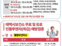 태백시는 시민들의 건강하고 안전한 겨울나기를 위해 2025년 인플루엔자(독감) 예방접종을 당초 11월 초에서 3주 앞당겨 10월 21일부터 실시한다고 밝혔다.이번 조치는 예년보다 독감 유행이 빨라질 것으로