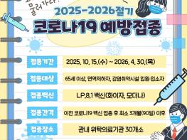 영주시는 오는 10월 15일부터 내년 4월 30일까지 코로나19 무료 예방접종을 실시한다.이번 접종은 코로나19 재확산을 막고 고위험군 시민, 특히 어르신과 면역저하자 등 취약계층의 건강을 지키며 지역사회