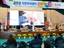 금산군주민자치협의회(회장 권문석)는 11월 28일 금산종합체육관에서 제12회 금산군 주민자치센터 문화프로그램 발표회를 개최했다.이날 박범인 금산군수를 비롯해 주민자치위원, 군민 등 400여 명이 참여한