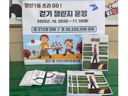 영도구 영선1동 행정복지센터는 지난 10월 20일부터 11월 18일까지 30일간 진행된 ‘영선1동 걷기챌린지 쓰리 고(GO)!’가 주민들의 높은 참여 속에 성공적으로 마무리됐다고 밝혔다. 이번 챌린지는 모바일