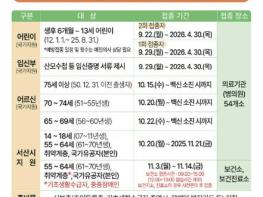 2025-2026절기 어린이, 임신부 인플루엔자 무료 예방접종 시작