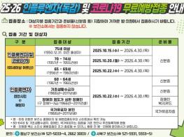천안시는 오는 9월 22일부터 인플루엔자(독감) 무료 예방접종을 시행한다고 5일 밝혔다. ‘25-26’ 절기 인플루엔자백신은 세계보건기구(WHO)의 권고와 예방접종전문위원회 심의를 거쳐 기존 4가 백신에서