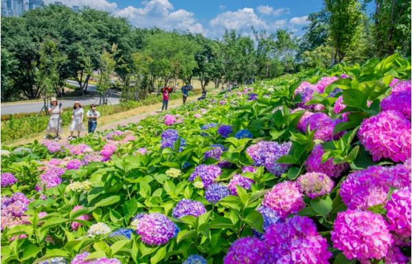 [헬스앤마켓리포터스, 조태익기자] 구미 도심 한복판, 과거 쓰레기 매립장이었던 공간이 지금은 형형색색 수국이 만개한 ‘꽃 정원’으로 변신해 관광객의 발길을 사로잡고 있다. 시민들 사이에서는 “구미에서 이렇게 아름다운 곳이 있었나”는 감탄이 이어지고 있으며, SNS를 통해 전국으로 소문이 퍼지면서 여름철 대표 명소로 급부상하고 있다.