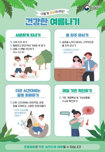 충분한 수분 섭취, 외출 시 모자·양산 지참, 정오~오후5시 야외활동 자제