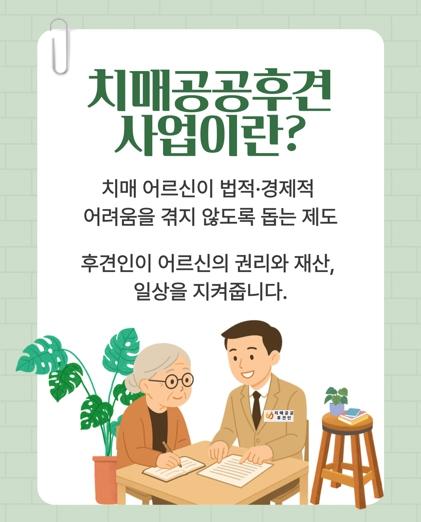 최근 사회적으로 ‘치매머니’ 문제가 대두되면서 치매 환자가 본인 재산을 관리하지 못해 가족 간 갈등, 금융사기, 재산 유용 등 다양한 피해 사례가 증가하고 있다. 이에 대응하는 제도적 장치로 주목받는 것이 바로 치매 공공후견제도다.