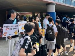 [헬스앤마켓리포터스, 조태익기자] 수원시 권선구보건소가 9일 능실초등학교 정문에서 청소년 흡연·범죄 예방 캠페인을 펼쳤다.