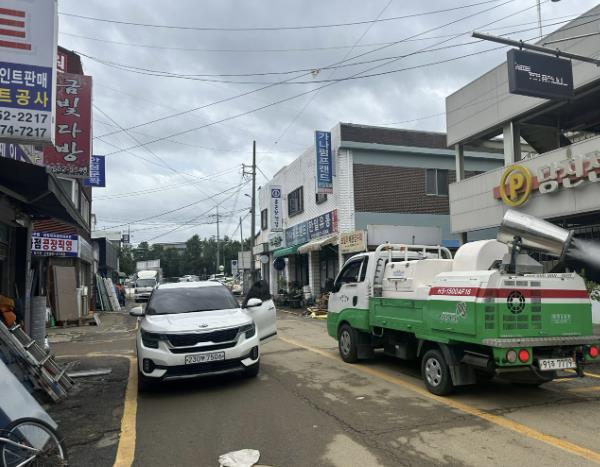 위생환경이 취약하고 모기 등 매개체가 증가하면서 발생할 수 있는 풍수해 감염병 유행에 대비하고자 피해 지역 대상으로 집중 방역을 추진하며, 현재 12개 권역 방역 전문용역 업체와 보건소 자체 방역을 적극적으로 활용해 침수 지역을 중심으로 친환경 연무소독을 완료했다.