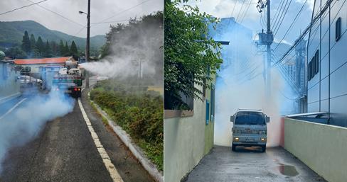 이번 호우로 주택가와 하천변 등지 물이 고인 곳이 늘어나 비가 그친 3일 이내를 집중 방역 기간으로 정해 방역 차량과 휴대용 장비를 활용한 집중 방역을 실시하고 있다.