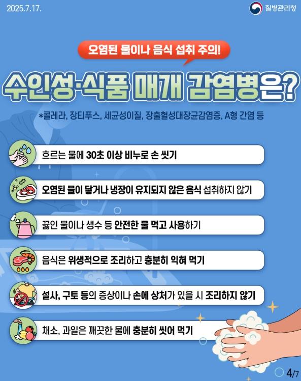 시는 감염병 예방을 위해 끓인 물이나 안전한 음식을 섭취하고, 흐르는 물에 비누로 손을 씻는 등 위생 수칙을 철저히 지켜줄 것을 당부했다.
