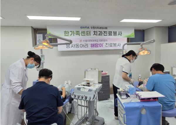 수원시치과의사회는 지난해 1월부터 한가족센터 진료소에서 ‘꿈을키우는집’ 보육원 입소자를 대상으로 구강검진과 함께 스케일링, 불소도포, 구강위생 등 교육을 정기적으로 진행하고 있다.