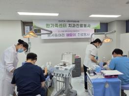 이날 수원시치과의사회 민봉기 회장 등 치과의사들은 전반적인 구강 상태 점검과 함께 스케일링, 불소도포 등 치과 진료봉사를 했다. 또 장안구 보건소 직원들과 함께 올바른 칫솔질 방법 등을 실습하는 구강위생 교육을 진행했다.