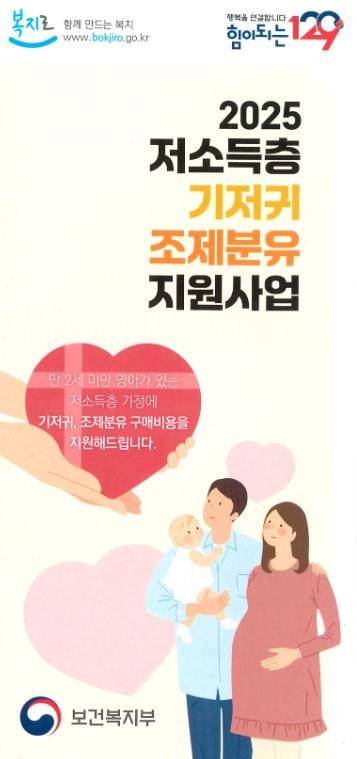 기저귀 지원 대상은 0~24개월 미만 영아를 둔 ▲기초생활보장수급자, ▲차상위계층, ▲한부모가족, ▲기준 중위소득 80% 이하 장애인 또는 다자녀(2인 이상) 가구다.