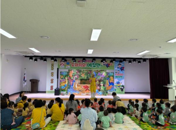 [헬스앤마켓리포터스, 조태익기자] 이천시는 8월 18일부터 21일까지 4일간 총 5회에 걸쳐 관내 1세~2세 영아 500여 명을 대상으로 개인 위생관리와 올바른 식습관을 주제로 한 교육 인형극 ‘도와줘요! 예절맨’ 공연을 진행했다고 밝혔다.