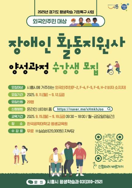[헬스앤마켓리포터스, 조태익기자] 시흥시는 2025년 경기도 평생학습 기회특구 사업의 일환으로, 외국인주민의 안정적인 지역 정착과 취업을 지원하기 위해 ‘장애인활동지원사 양성과정’을 개설하고 오는 9월 12일까지 수강생을 모집한다.