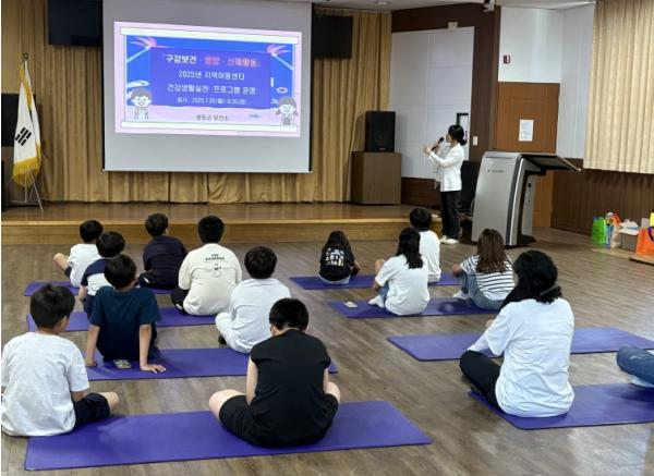보건소 소속 전문 인력이 직접 교육에 나섰다. 구강보건 교육은 치과 공중보건의가 맡아 올바른 칫솔질과 구강 건강 관리를 교육했고, 영양교육은 영양사가 ‘골고루 적당히 먹어요’란 주제로 △채소 섭취의 중요성 △6대 영양소 △식품군별 역할 등을 알기 쉽게 전달했다.
