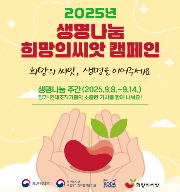 생명나눔 주간은 ‘장기 등 이식에 관한 법률’ 제6조의2에 따라 매년 9월 두 번째 월요일부터 1주일간 지정되어 있으며, 장기·인체 조직 기증자의 숭고한 희생정신을 기리고, 생명나눔 문화를 사회 전반에 확산하기 위해 마련됐다.